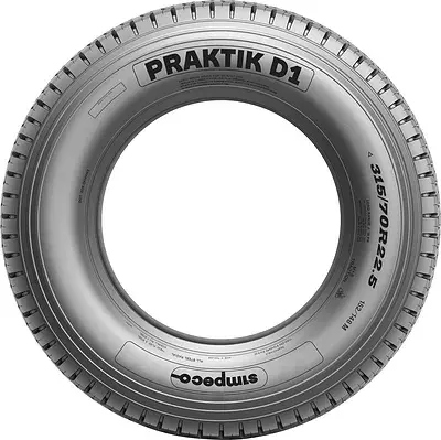 Коммерческая шина Simpeco Praktik D1 устанавливается на ведущей оси магистральных тягачей и грузовых автомобилей большой вместимости. Отличается повышенными тяговыми свойствами на мокром и заснеженном покрытии, наряду с надежностью и устойчивостью к механическим повреждениям.